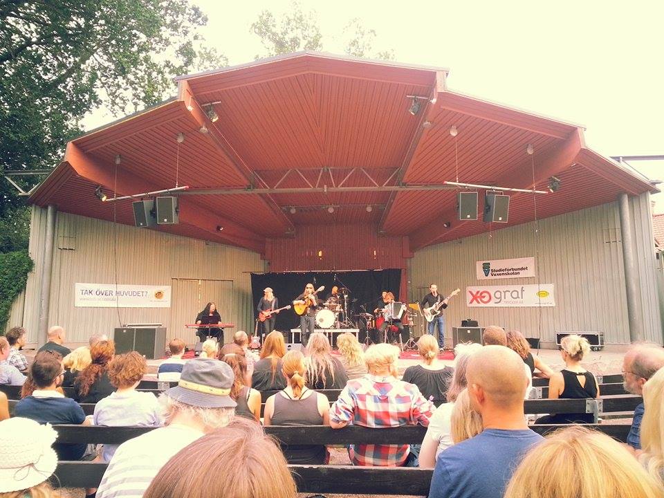 Ransta Trädgård live i Parksnäckan 6 aug 2014. Kjell Haraldsson, Joakim JJ Marsh, Jakob Fogelqvist, Daniel Bergström, Alvaro Svanerö, Benjamin Fogelqvist och Phillip Bastin. på Parksnäckan.